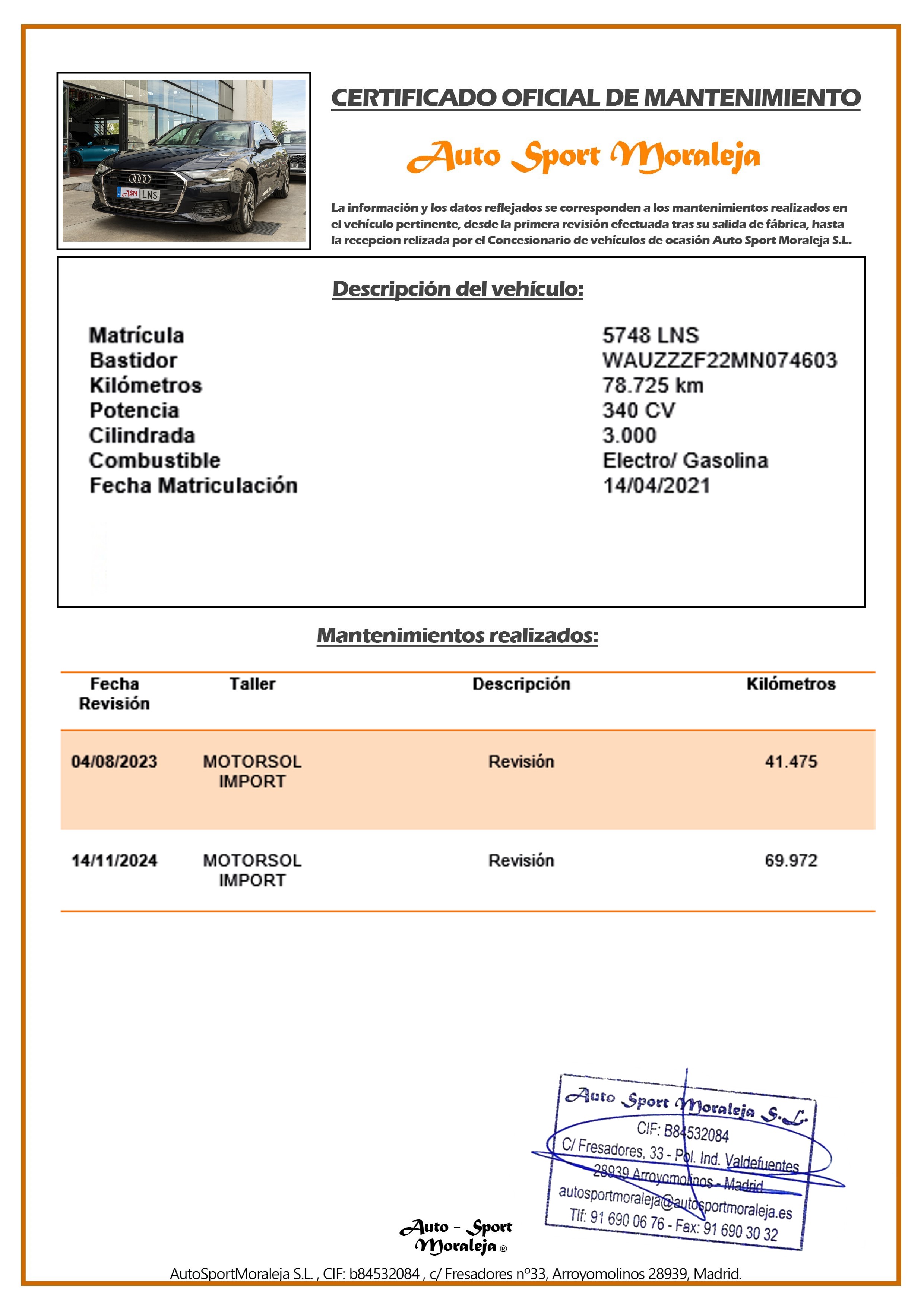 | N. Bastidor | WAUZZZF22MN074603 | |