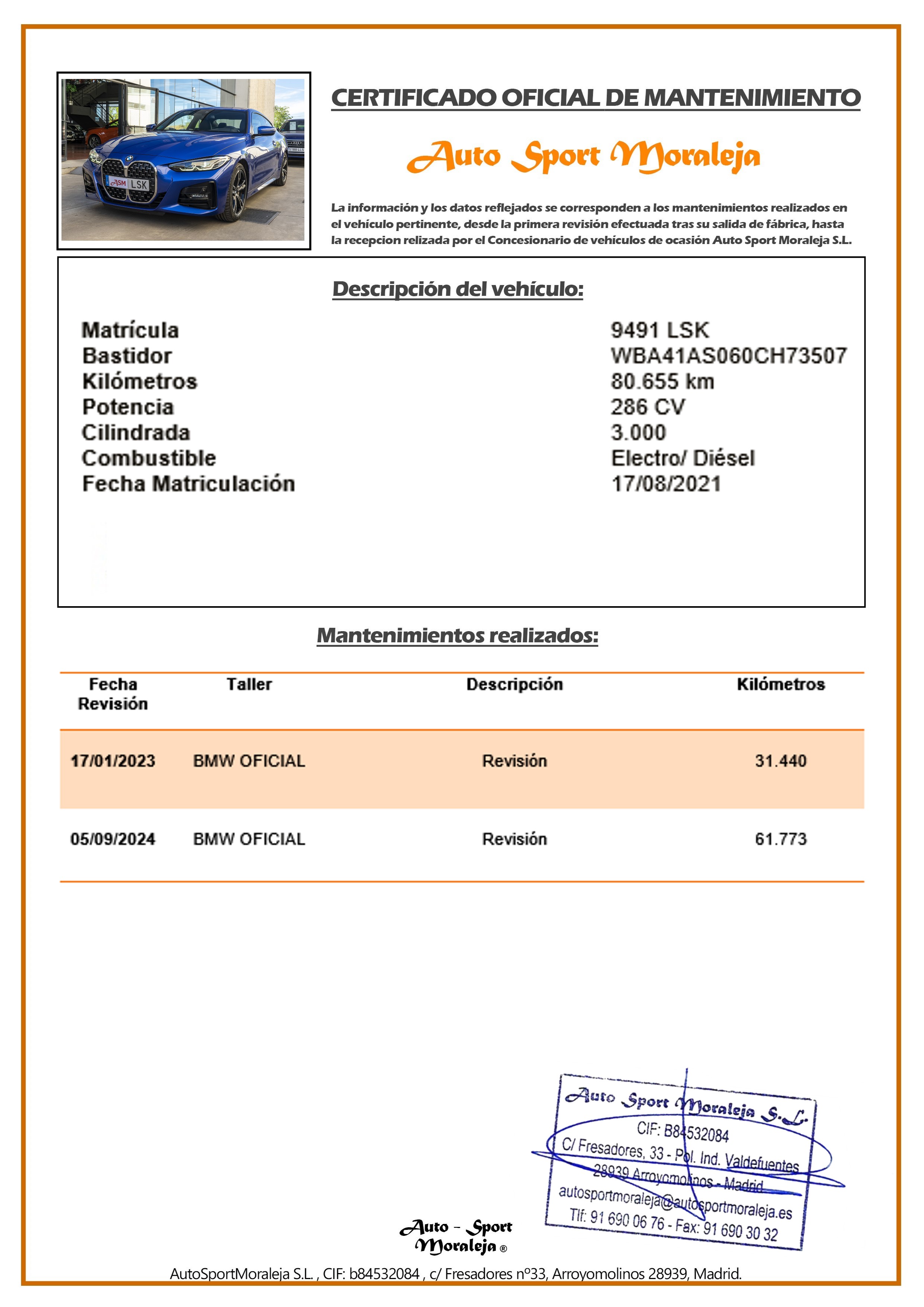 N. Bastidor | WBA41AS060CH73507 | |