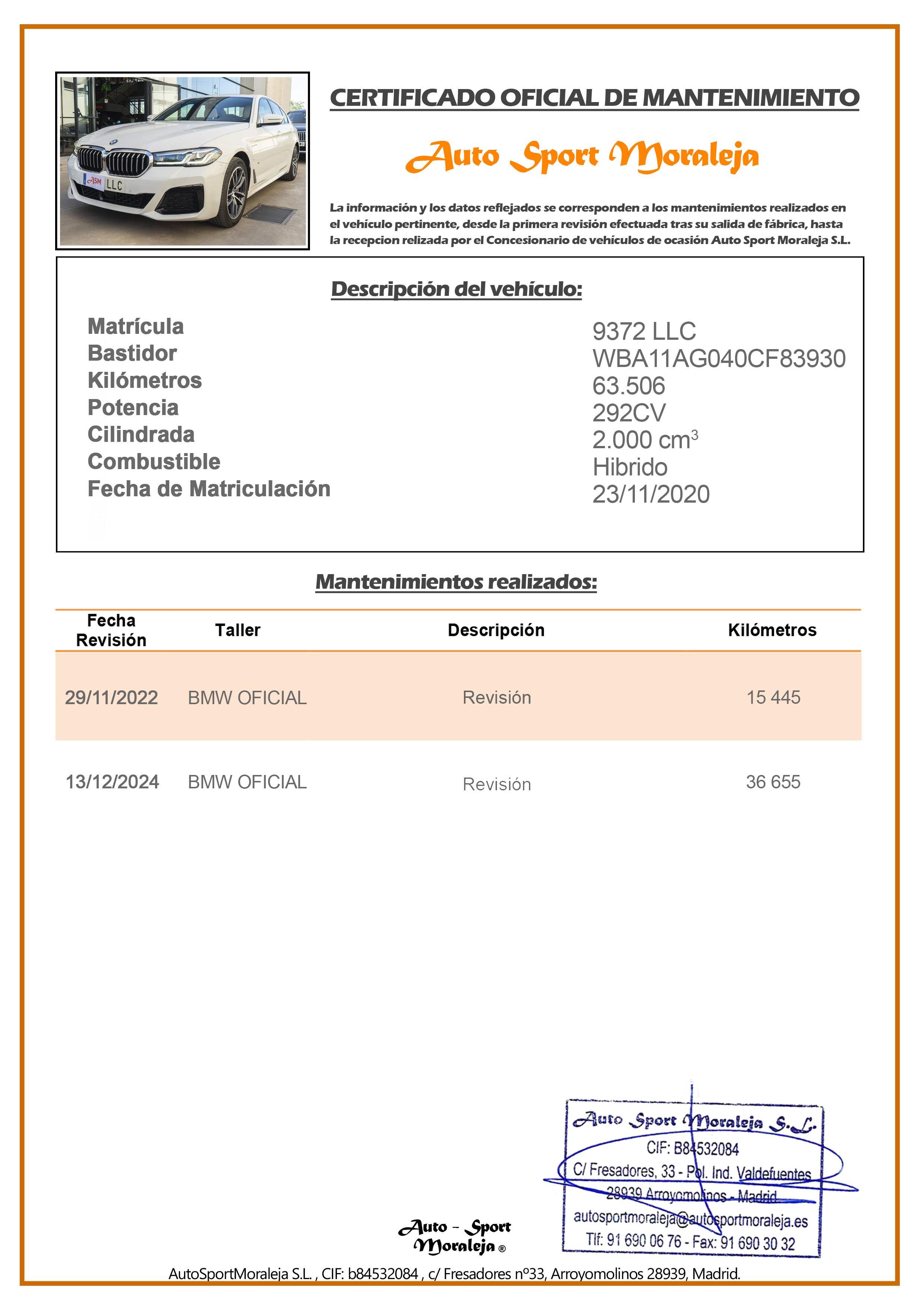 | N. Bastidor | WBA11AG040CF83930 | |