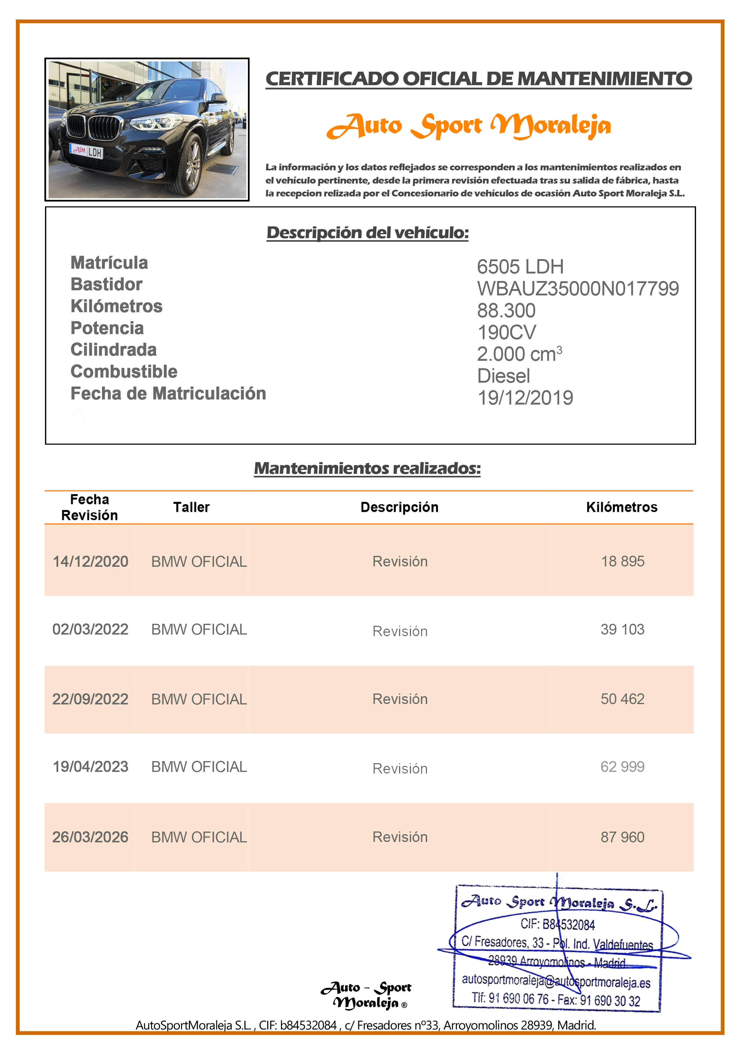 | Kilómetros | 88.300 | Año | 2019 |