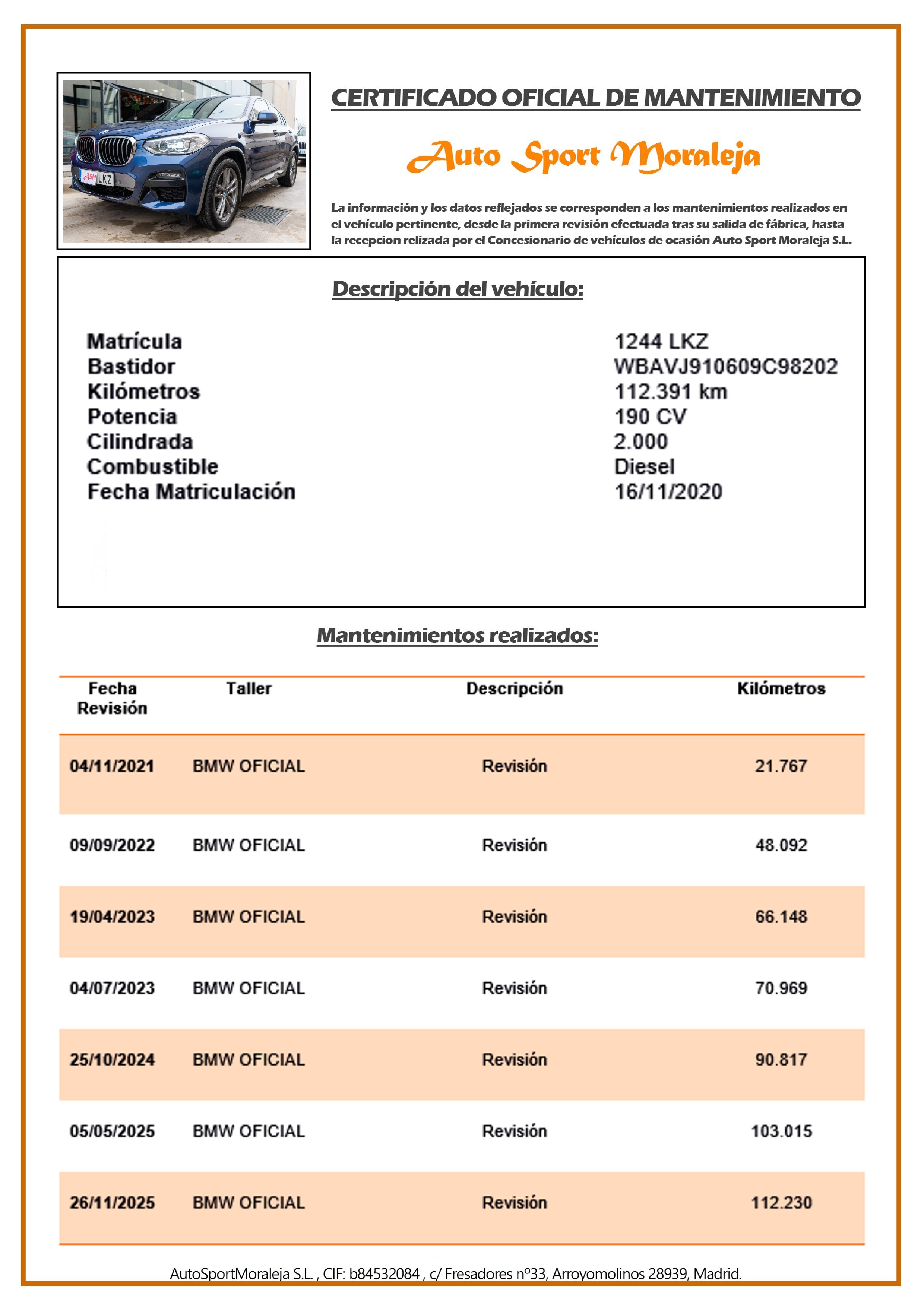 | Kilómetros | 112.400 | Año | 2020 |