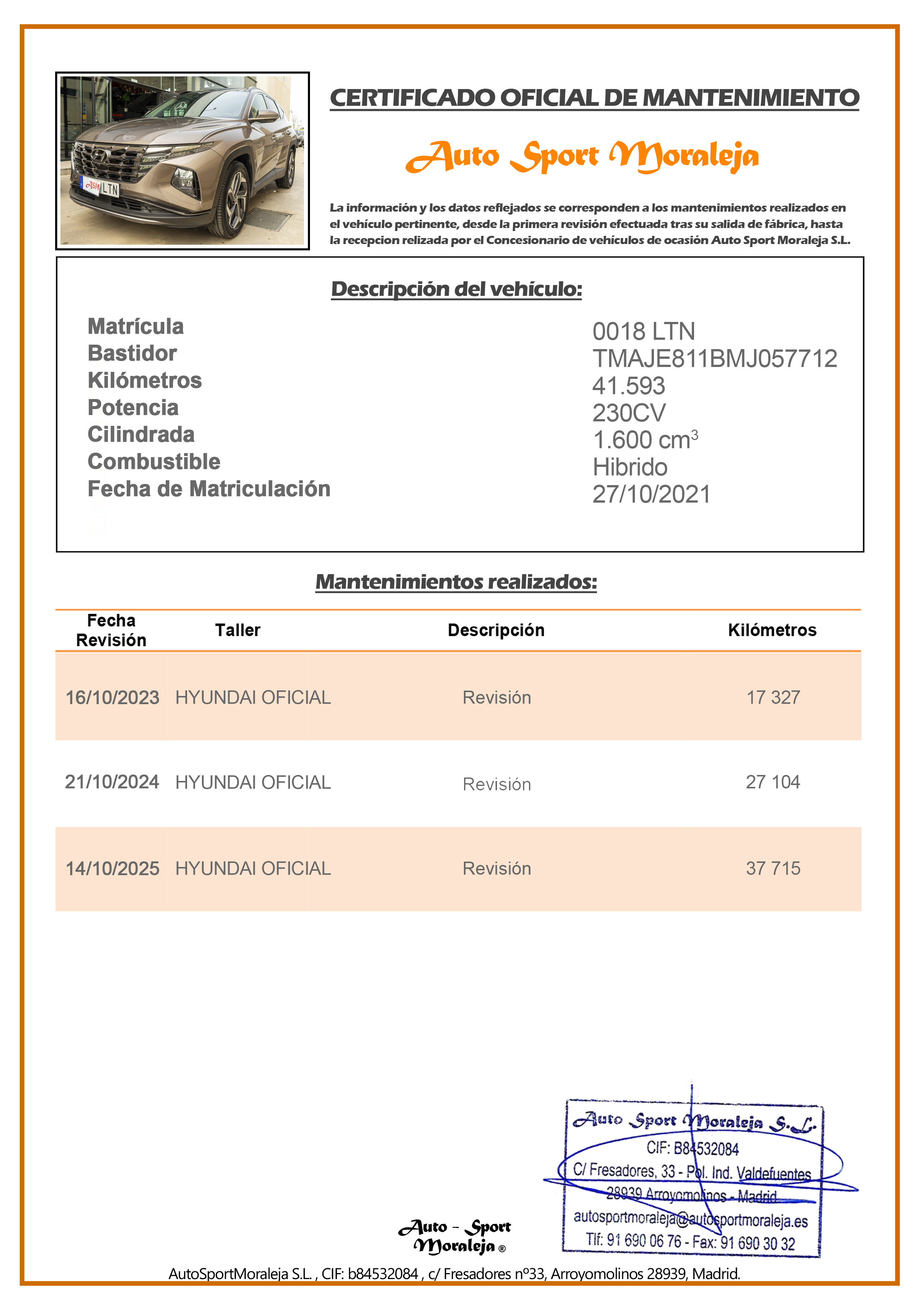 | Matriculación | 27-10-2021 | |